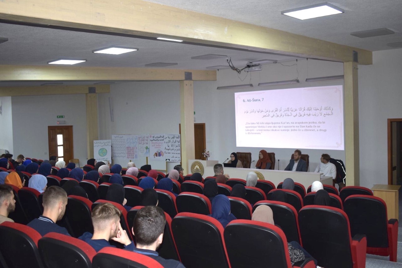 Ovogodišnji takmičari Amina Burnić, Džejlan Hadžić te hfz. Lamija Šahinović, koja je osvojila drugo mjesto Rijasetovog takmičenja iz arapskog jezika, pripremili su prezentaciju o arapskom jeziku iz perspektive Kur'ana.