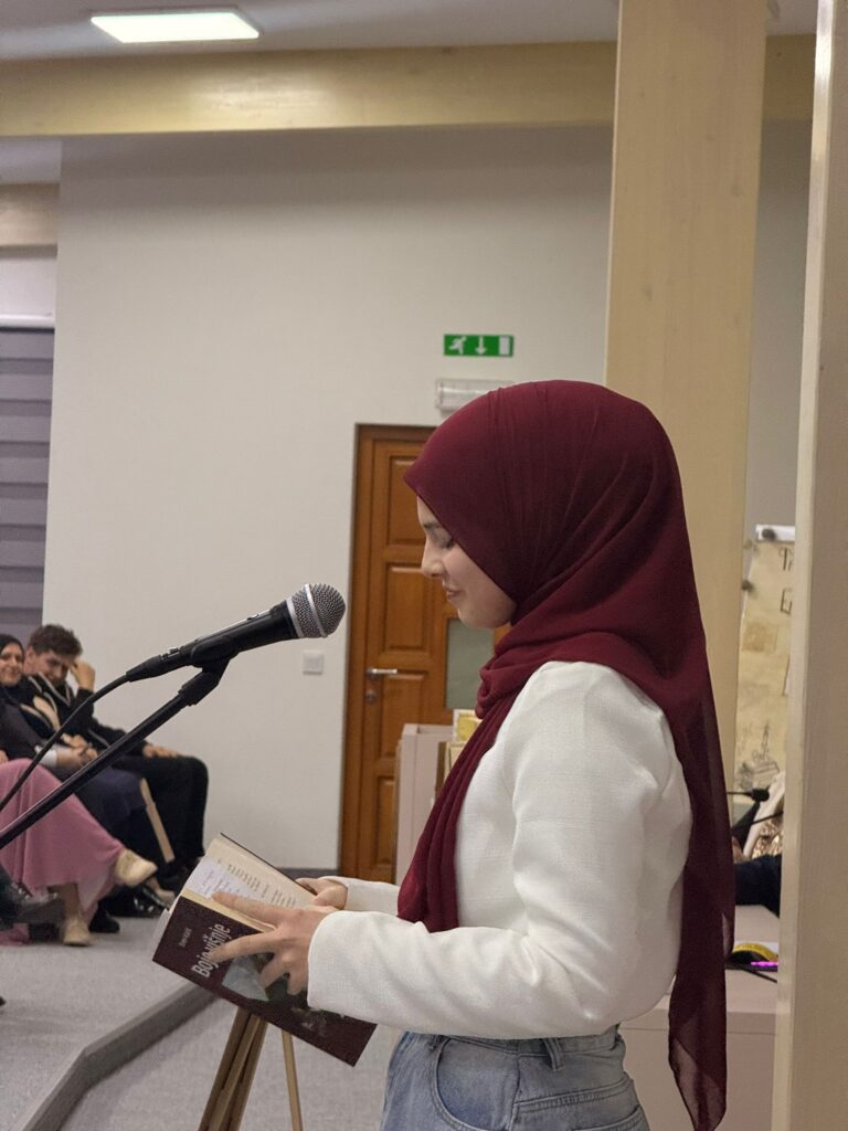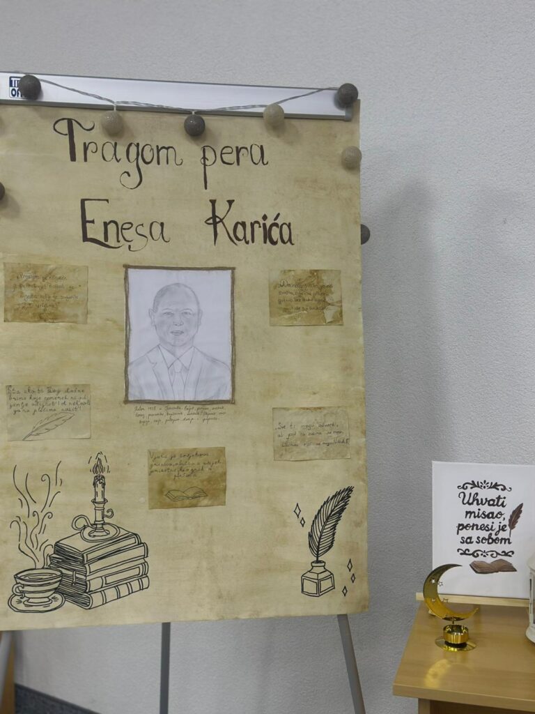Učenici naše medrese su svojim toplim i nadahnutim glasovima čitali odlomke iz Karićevih djela: „Crni tulipan“, „Bogovo roblje“, „Jevrejsko groblje“, „Boje višnje“ i “Pjesme divljih ptica”. Priliku da pročitaju dijelove koje su ih najviše dojmili imali su učenici trećeg razreda: Imran Bajrektarević, Amna Hadžić i Ajna Kečanović te učenica drugog razreda Adna Haralčić. Njihova interpretacija podsjetila nas je na snagu pisane riječi i dubinu misli koje ova djela nose.